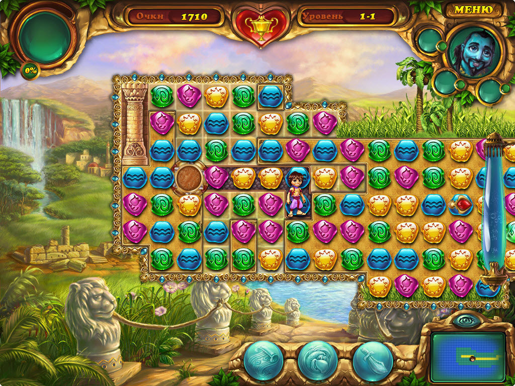 Обязательно держите при себе карту: по ней вы сможете быстро сориентироваться. Тем более что хитрый Джафар тоже хочет заполучить в жены прекрасную принцессу Будур и постарается всячески помешать вам выполнить задание Султана. Но вас не так-то просто сбить с толку! Чтобы основательно подготовиться к путешествию, вы должны пройти уровни с поиском необходимых предметов, восстановить компас и собрать по частям разбитый корабль.