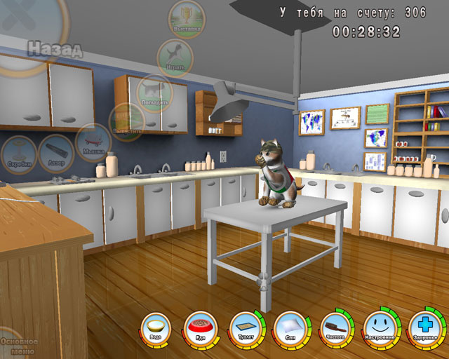 Еду, питание и аксессуары для ухода за котенком необходимо приобретать в магазине. Чем дольше вы играете с котенком, тем больше новых предметов вам будет доступно, поэтому не забывайте уделять питомцу достаточно внимания. Деньги на покупки можно зарабатывать на проходящих время от времени выставках котят.
