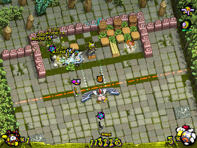 Вместе с Паулой вы бросите вызов этим негодяям в набедренных повязках. На каждом уровне вам нужно освободить нескольких цыплят, разрушив все препятствия и обойдя все ловушки. Механика этой игры представляет собой отличный пример арканоида. Чудесная сфера обладает умопомрачительной разрушительной силой, злобным папуасам несдобровать.