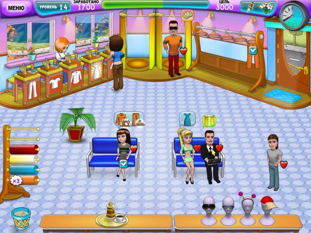На каждом этапе игры вам необходимо заработать определенную сумму денег, иначе уровень придется переигрывать. Чтобы этого не произошло — следите за настроением посетителей. Не забывайте преподносить им небольшие подарки и угощать ароматным кофе, а также старайтесь выполнять несколько одинаковых действий подряд. Например, если заказать в мастерской сразу несколько предметов одежды одного цвета или кроя, то ваша выручка существенно увеличится.