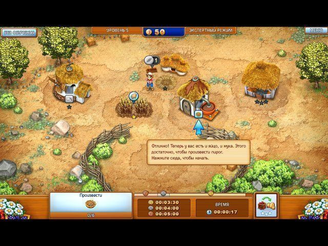 На каждом уровне вам необходимо будет собрать определенное количество нужных продуктов. Их можно вырастить или добыть путем переработки на специальных фабриках. Вам предстоит строить целые производственные цепочки: пшеница мелется в муку, мука смешивается с яйцами при производстве пирогов, а они, в свою очередь, могут стать основой для тортов! Чем длиннее цепочка, тем дороже товар можно получить!