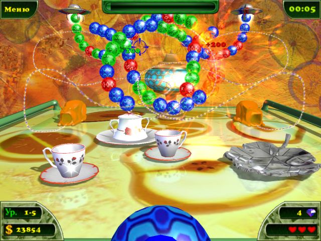 Кроме классического режима, который понравится всем поклонникам старой доброй "Зумы", в "Волшебном чае" вы найдете два дополнительных игровых режима. В "Аркадном" ваша пушка-шарикомет находится над столом, поэтому вы сможете стрелять в любое место цепочки. Однако будьте осторожны, ведь выпущенный шарик может отскакивать от расставленной посуды! Ну а в режиме "Приключение" пушка расположена в горизонтальной плоскости таким образом, что вы сможете стрелять шариками в любом направлении.