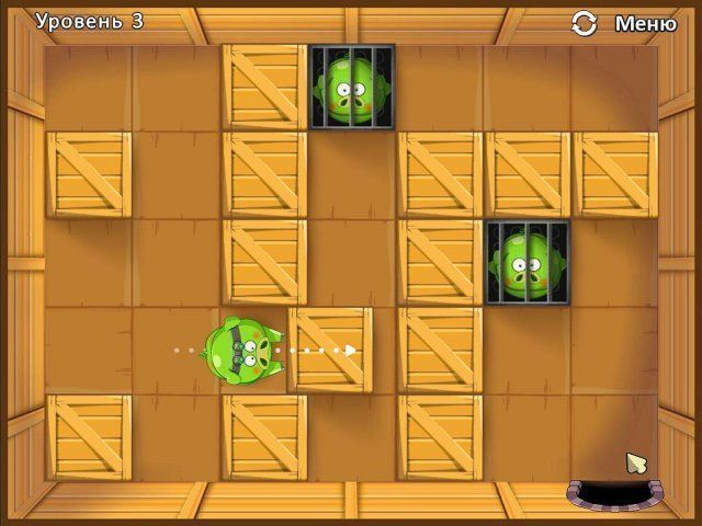 Условия задачи простые. Три поросенка сидят в подземелье у Серого Волка, четвертому нужно выручить их из беды. Вы играете за спасателя, перемещаете его по игровому полю мышкой или клавишами-стрелочками. Чтобы добраться до пленников, нужно преодолеть препятствия. На первых уровнях – разобраться с лабиринтом из ящиков. Помните: ящиков много, места мало. Поросенок может за раз передвинуть один ящик, с двумя он уже не справится. А если заблокирует клетки с другими поросятами или перекроет выход, спасательную операцию придется начинать заново. Будьте внимательны, оставляйте пути для отступления!