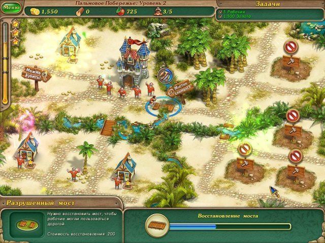 Чем больше рабочих будут трудиться над достижением цели, тем быстрее эта самая цель будет достигнута. Но рабочих нужно постоянно подкармливать, чтобы они не валились с ног от усталости. Собирайте с фруктовых деревьев питательные плоды, а лучше постройте рынки, на которых можно покупать еду в любых количествах. Обязательно следите за наличием средств на покупку еды и древесины.