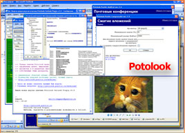 Potolook - это надстройка (plugin, add-in) к почтовому клиенту Microsoft Outlook. Potolook расширяет возможности стандартного Outlook, предоставляя множество дополнительных сервисов. Microsoft Outlook это не только почтовый клиент, но и мощный органайзер, с помощью которого можно автоматизировать практически любую офисную задачу, в чем так же поможет Вам Potolook. Используя шаблоны Potolook значительно удобнее и быстрее создавать письма. Вам не нужно теперь каждый раз здороваться с собеседником, цитировать исходное письмо, удалять "подвал", подписываться - все это сделает Potolook! HTML шаблоны дают возможность создания в Outlook привлекательных писем без особых затрат. Выделение цитат (подсветка) позволяет быстрее ориентироваться в больших письмах. Теперь Вы не пропустите ни одного слова исходного сообщения. Вы можете сами создавать темы подсветок и выделять произвольные блоки текста на Ваше усмотрение. Теперь не нужно сохранять все вложения в отдельной папке и пользоваться дополнительной программой-вьювером, просматривайте их прямо в Outlook! Помимо всех известных графических форматов поддерживается просмотр заголовков сообщений, текстовых и офисных файлов.