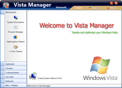 Посмотреть скриншот Vista ManagerA powerful software tool to tweak, optimize, maintain and tune up your Windows Vista, it includes over thirty different utilities! It will help your system to be stable, fast, secure and personal! For example, get detailed system and hardware information; Tweak your system to improve windows startup and shutdown speed; tweak your hardware to increase system performance; Find and clean junk files; searchs your computer for duplicated files; easily checks registry and repairs incorrectly linked registry entries; Defrag Registry to reduce application response time; Control what is started on Windows startup; tune up Vista boot menu; set context menus of mouse right clicking; customize desktop, menus, toolbar, notifications, change wallpaper automatically; Improve desktop, menus, control panel, windows logon securities, enable numerous hidden performance options, disable system updates and error reports; hide and restrict access to drives, specify which applications are not allowed to be executed, encrypt/decrypt and shred files, camouflage folder to hide its content from Windows Explorer, change the location of system folders; Privacy Protector can maintain your personal privacy by eliminating the tracks that you leave behind. Optimize Internet connection speed, manager your all shares, search and find opened ports; tweak your IE easily; automatically check invalid URLs in your favorites and parse domain name; backup your Windows Mail; show the collection of Windows utilities. Vista Manager has a topnotch, easy-to-use user interface that requires no technical knowledge. It is an excellent companion for windows Vista!